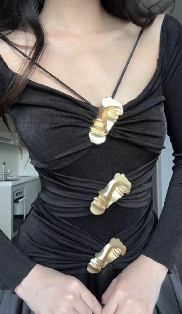 بتصميم بارز و ياقه عميقه تبرز أنوثتك بطريقة جذابة ومثيرة مع تفاصيل ذهبيه مميزة تضيف لمسة من الفخامة والرقي .