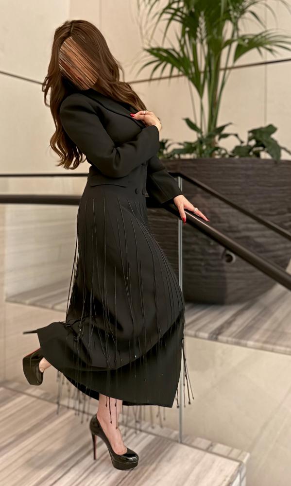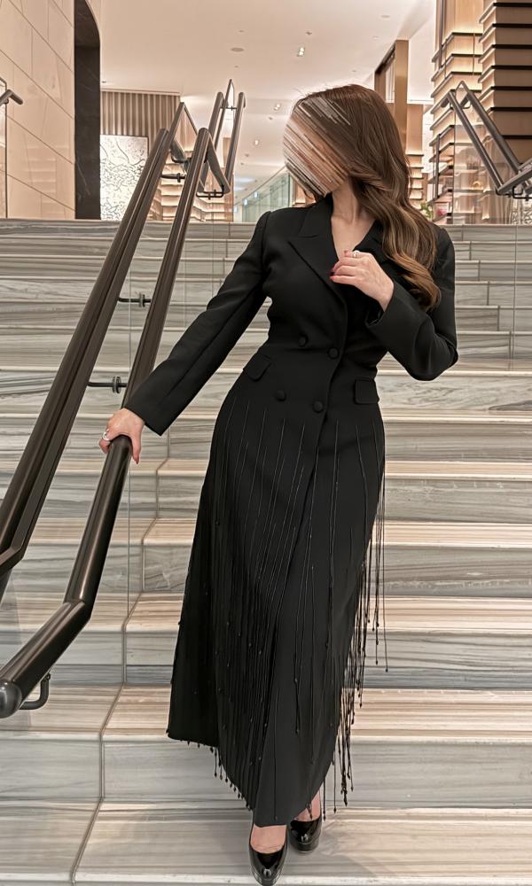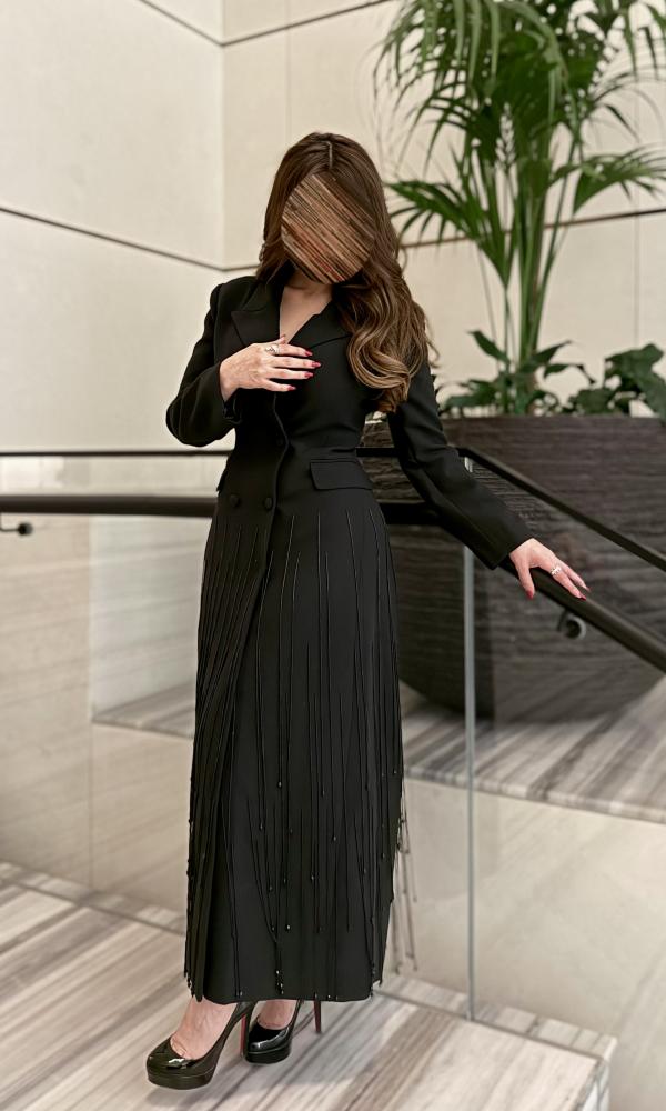 فستان كريستال يتميز بتصميم يجمع بين الأناقة والتميز. بتصميم قصة البليزر الأنيق مع تفاصيل الهدب الكريستالي وبقصة متقنه تناسب مختلف الأجسام ، والهدب الكريستالي اليدوي يضيف لمسه استثنائيه ولافته .